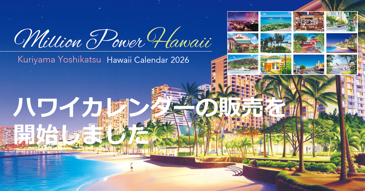 当社のお知らせページにも掲載しましたが、今年も栗山義勝さんのイラストによるオリジナル ハワイカレンダーの販売を11月から開始しました。